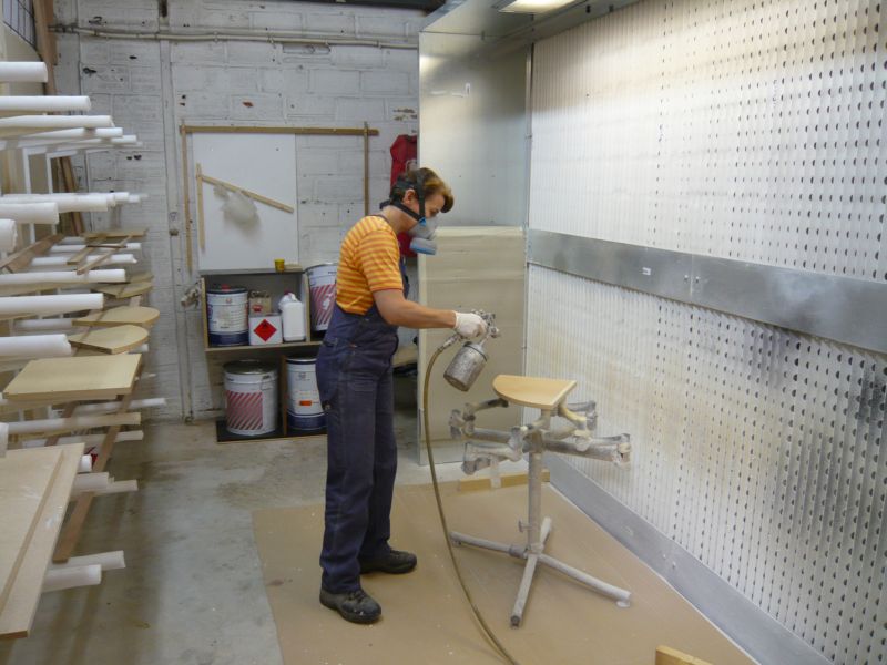 Pour les vernis, et le laquage, une cabine de peinture au pistolet filtrée et ventilée permet d’obtenir un qualité de finitions haut de gamme, et de répondre et satisfaire ainsi à tout type de commandes .