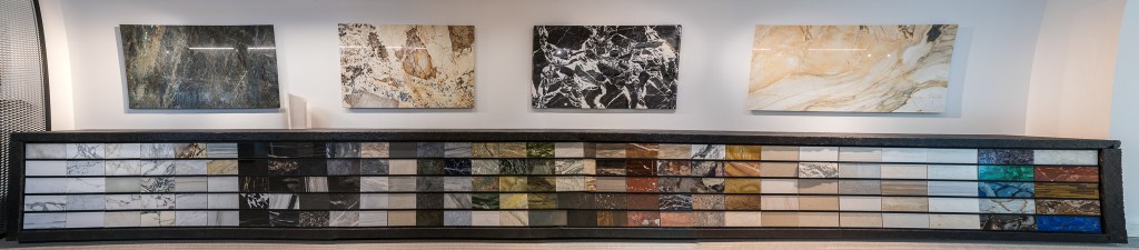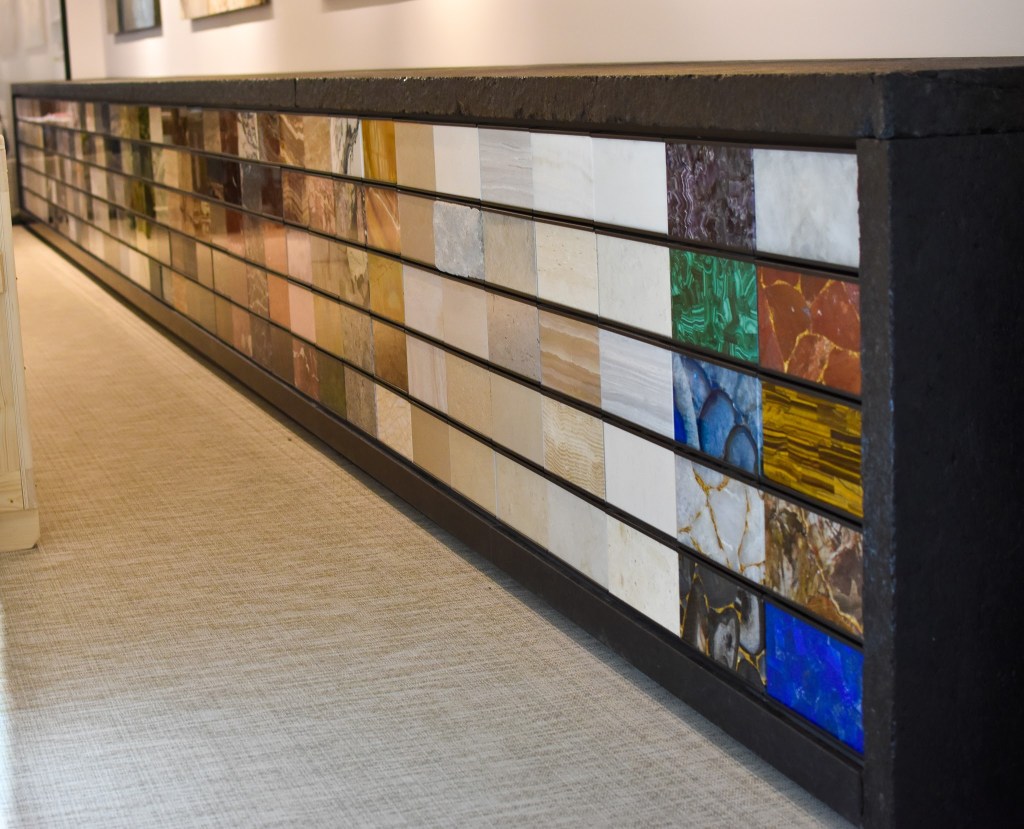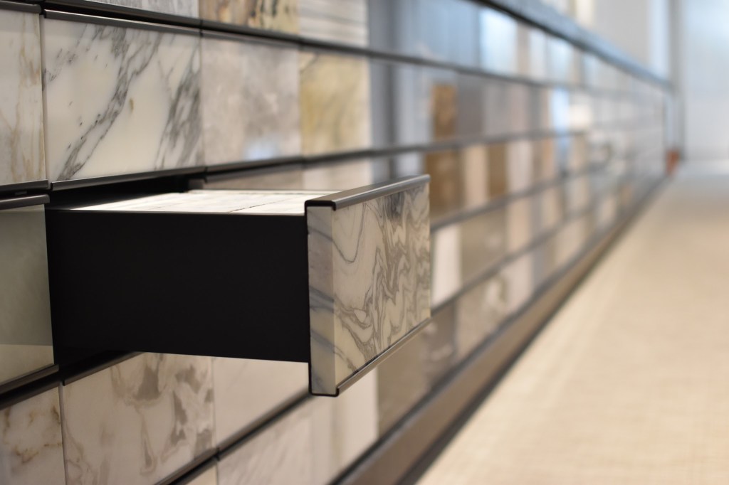 Meuble à échantillons pouvant accueillir et stocker 200 références de marbres différentes.