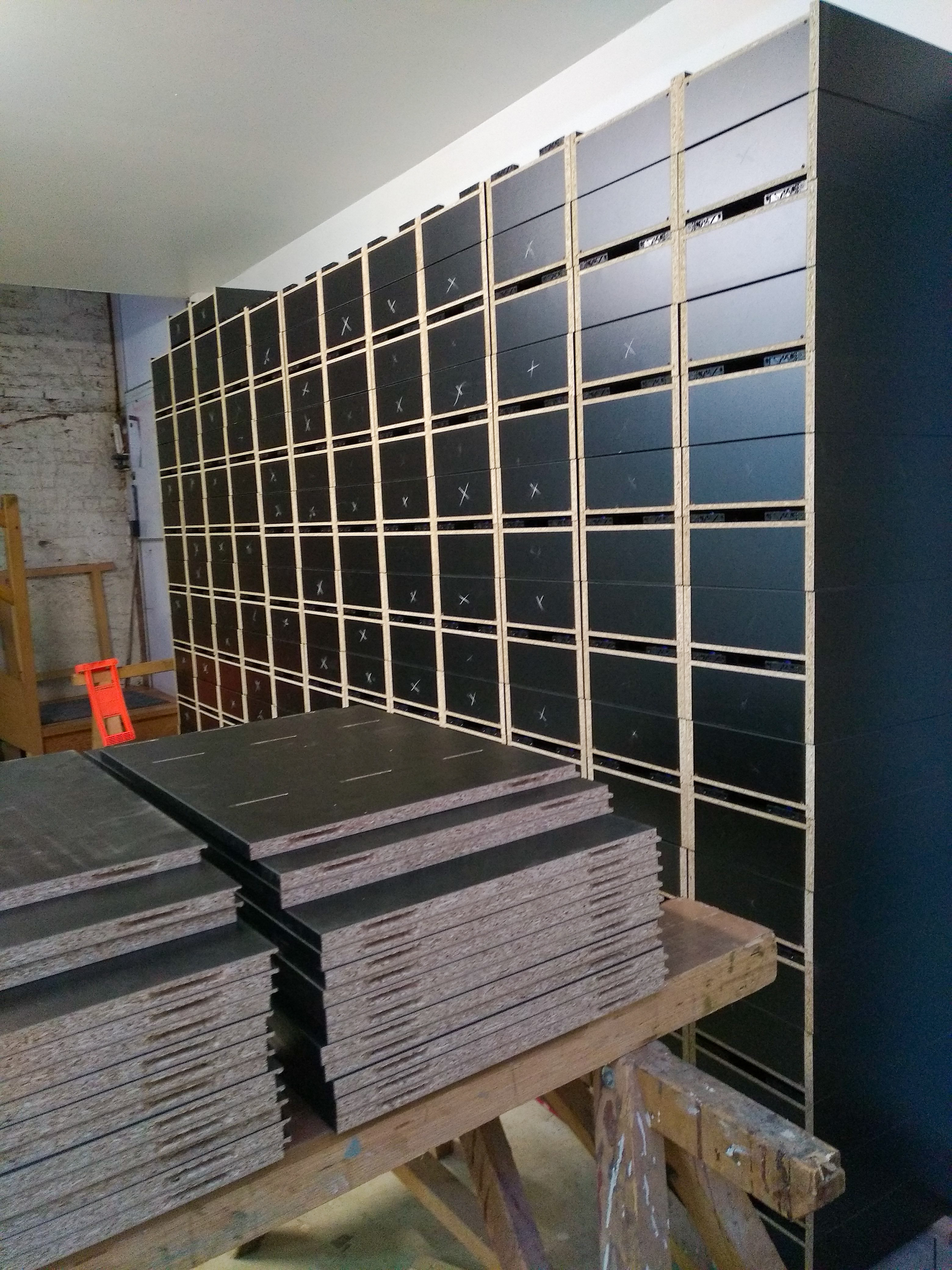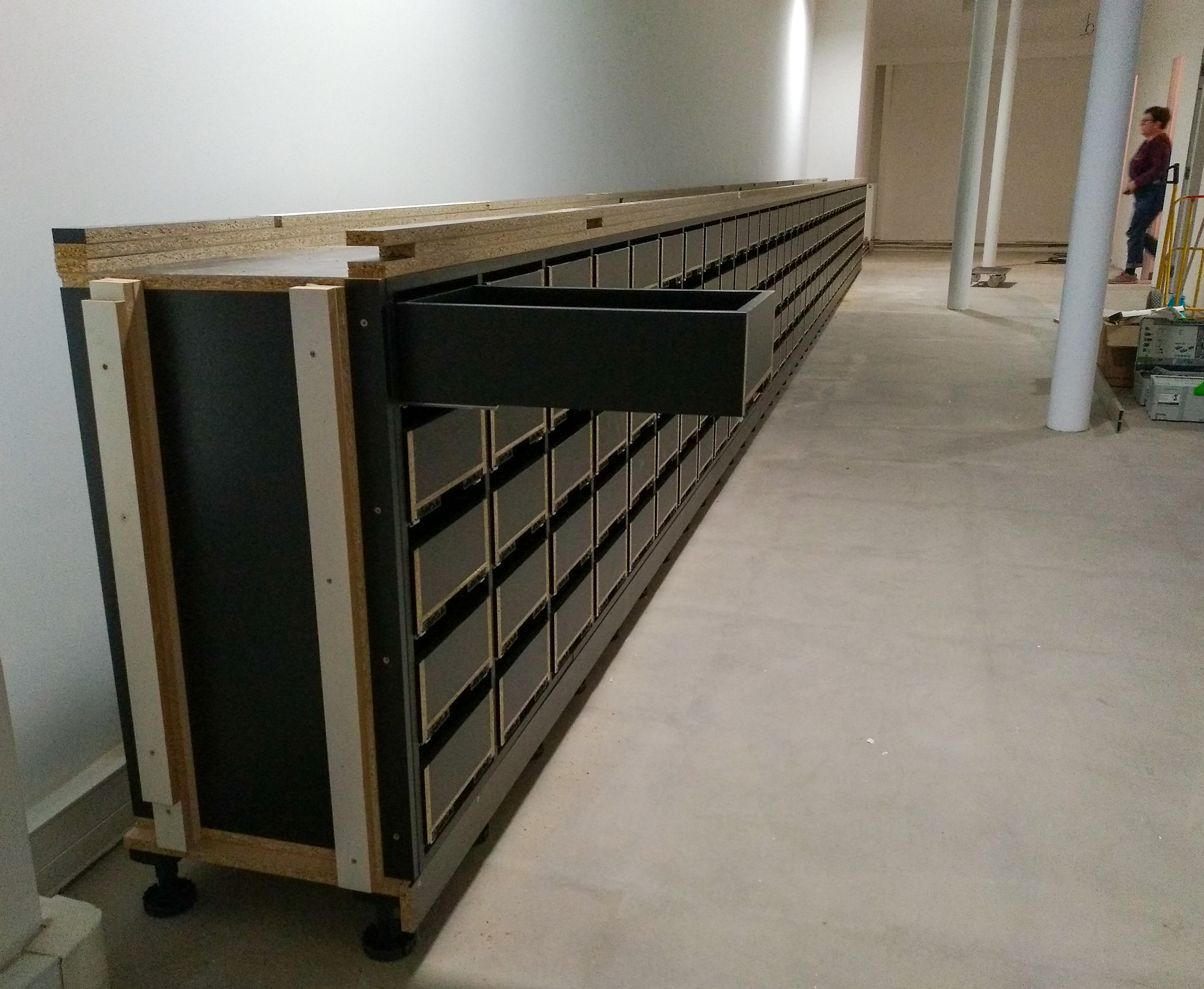 Meuble à échantillons – 12m de long – 200 tiroirs