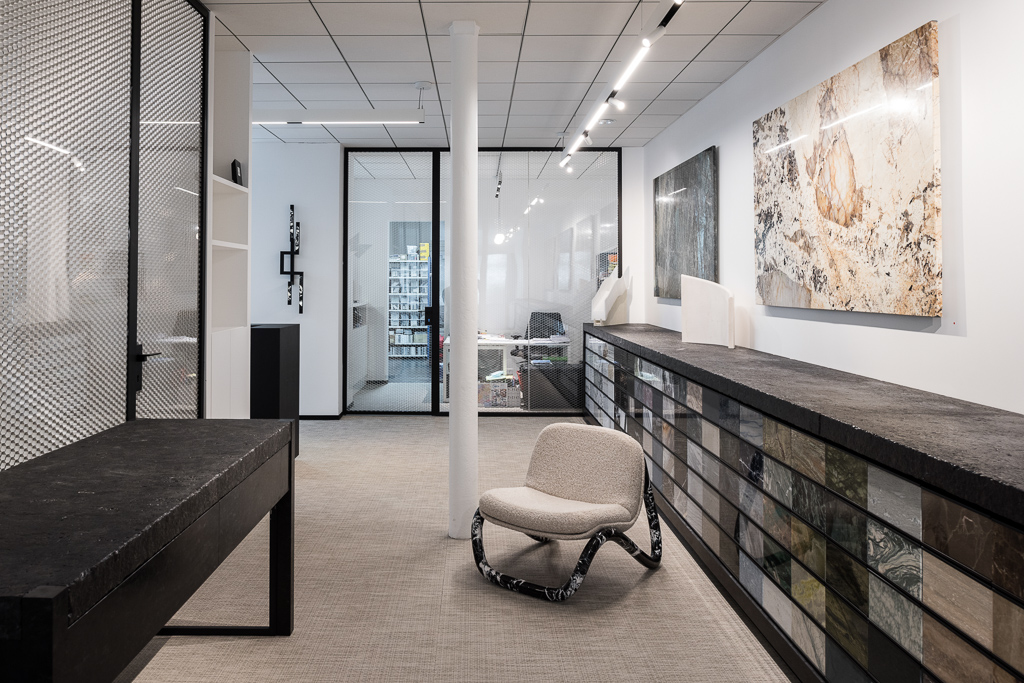 Mineral Expertise , le leader européen en travaux de marbrerie de décoration et de prestige a confié fin 2019 à la Caracole la réalisation et la pose de l’agencement de son nouveau showroom à Paris.