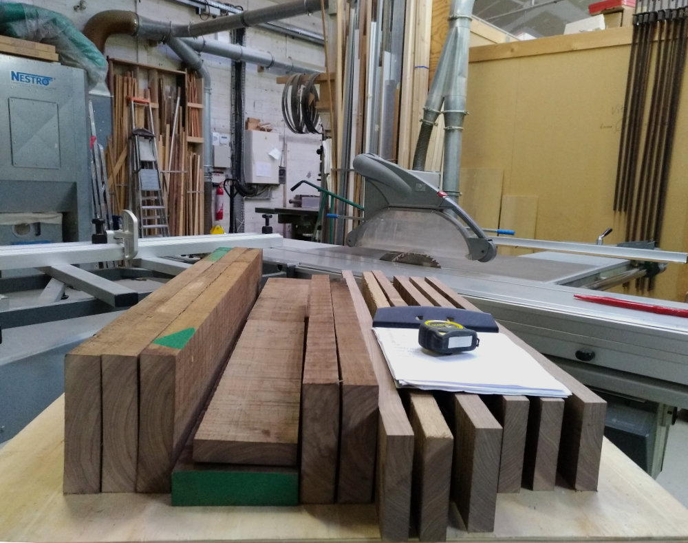 Les pièces sont entièrement réalisées à la main, le meuble est simplement assemblé et collé, sans l’aide d’aucune quincaillerie.